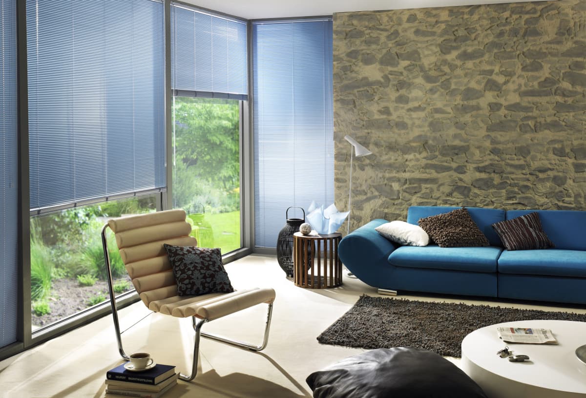 Алюминиевые горизонтальные жалюзи — солнцезащитные устройства, состоящие из поперечных алюминиевых планок (ламелей), которые можно поворачивать для регулировки света и поднимать для полного открытия.
